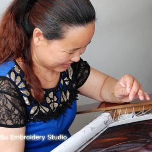 Weifang is a remarkable embroidery artist who possesses an extraordinary mastery of embroidery techniques that can be considered nearly flawless. Her unparalleled hand embroidery skills make her a versatile embroidery artist capable of undertaking any custom embroidery projects of various subjects. Whether it's intricate floral designs or the most challenging of all – creating lifelike custom portrait embroideries based on personal photographs which demands the highest level of embroidery skills to achieve realism – Weifang can fulfill it and often surpass customers’ expectation. Her stunning embroidery talent was highly appreciated by Chunhua even before 2006 when she did not win any national awards for her silk embroideries.
