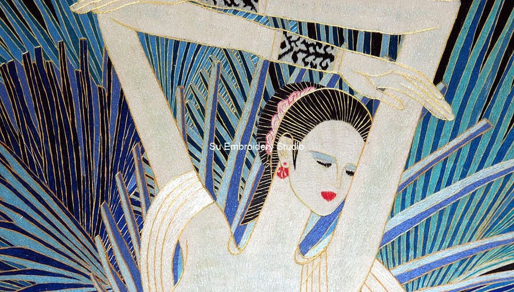 It is all hand embroidered with fine silk threads by embroidery artists from Su Embroidery Studio in Suzhou, China.