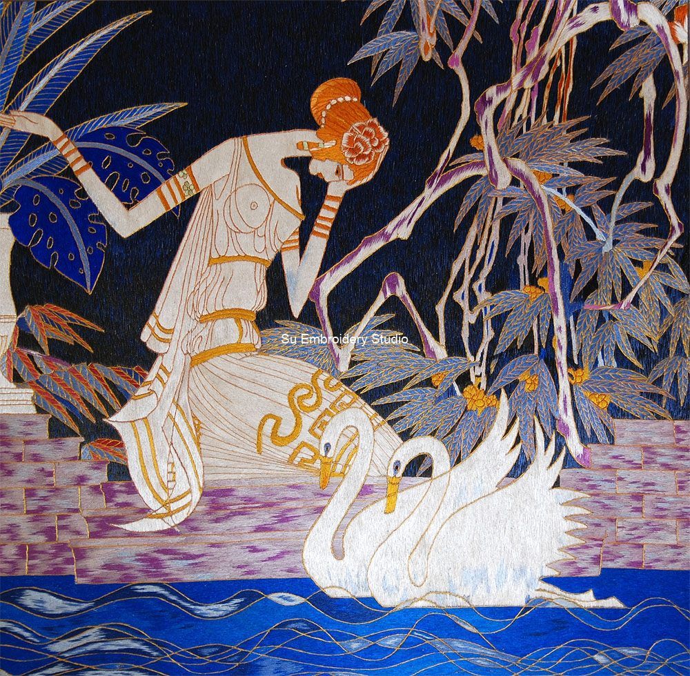 It is all hand embroidered with fine silk threads by embroidery artists from Su Embroidery Studio in Suzhou, China.