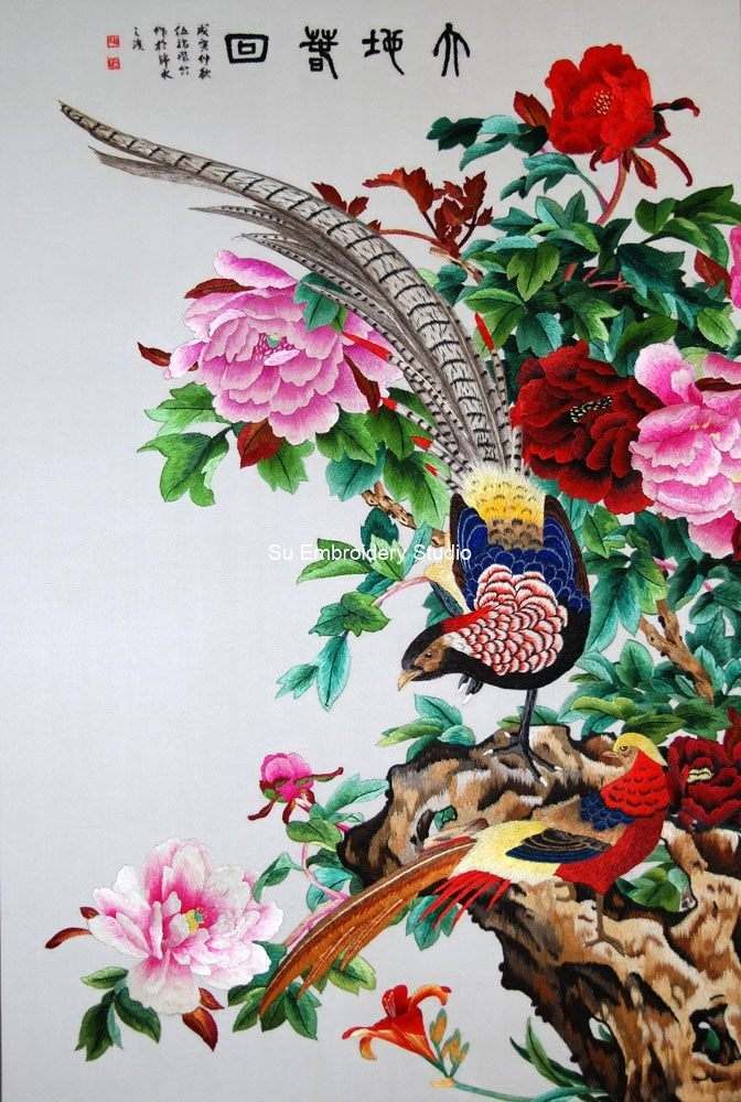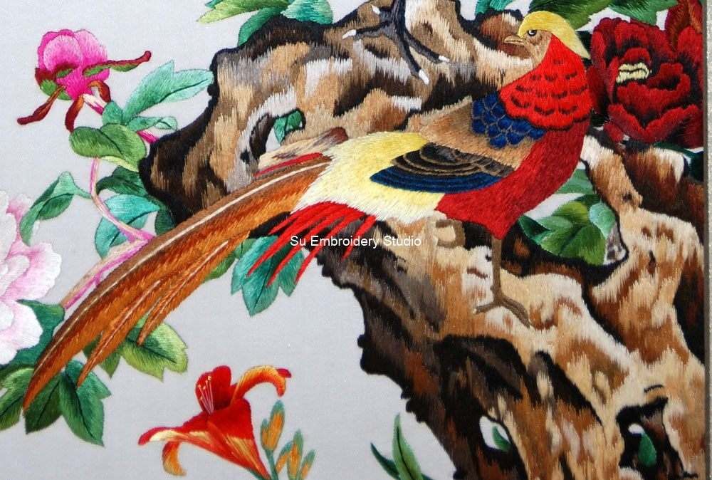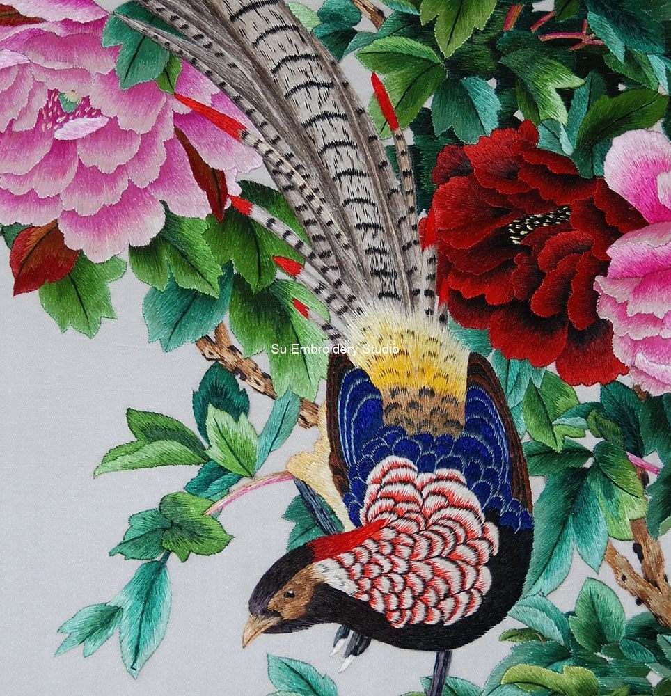 It is all hand embroidered with fine silk threads by embroidery artists from Su Embroidery Studio in Suzhou, China.