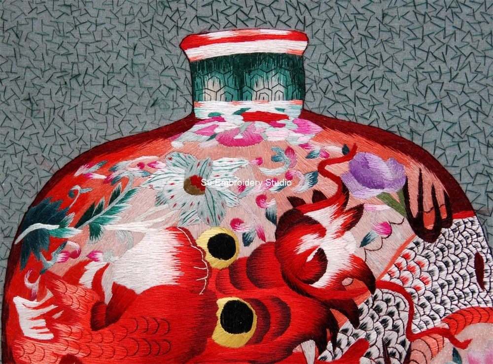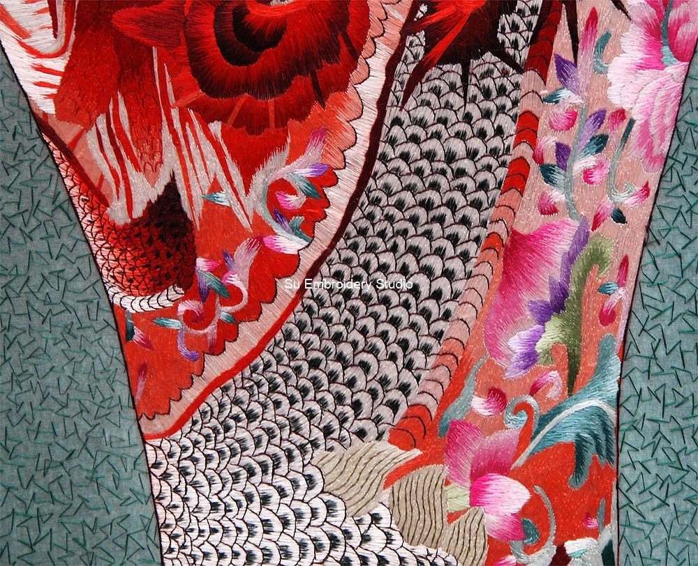 It is all hand embroidered with fine silk threads by embroidery artists from Su Embroidery Studio in Suzhou, China.