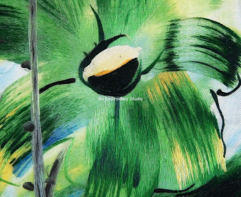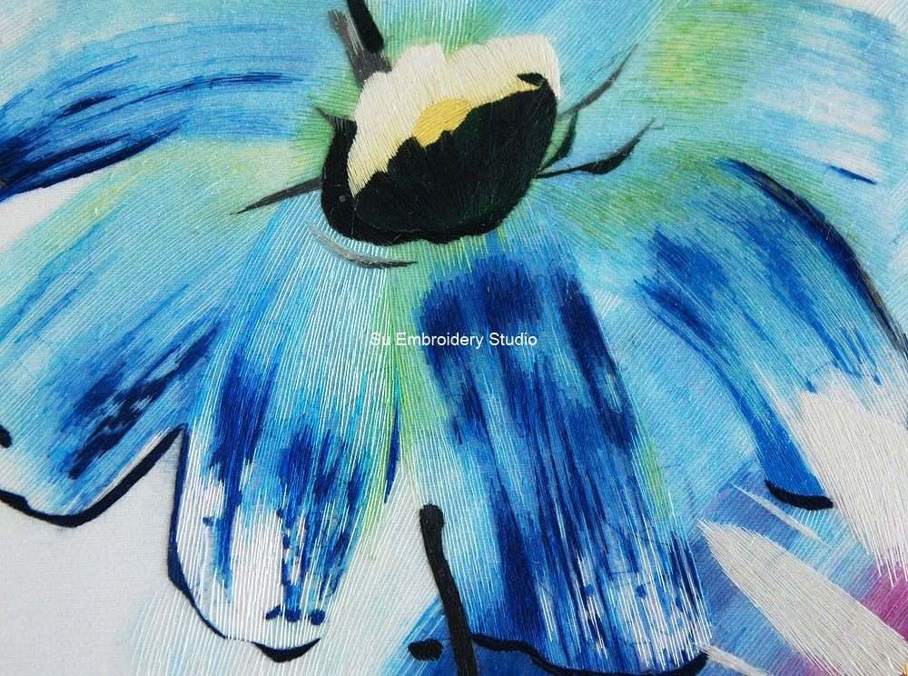 It is all hand embroidered with fine silk threads by embroidery artists from Su Embroidery Studio in Suzhou, China.