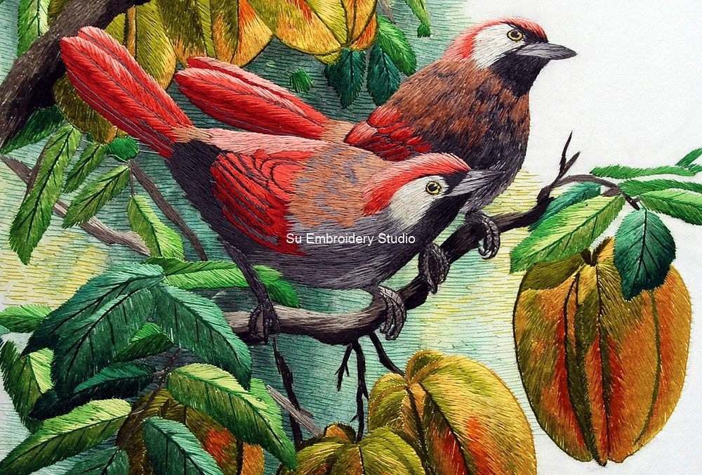 It is all hand embroidered with fine silk threads by embroidery artists from Su Embroidery Studio in Suzhou, China.