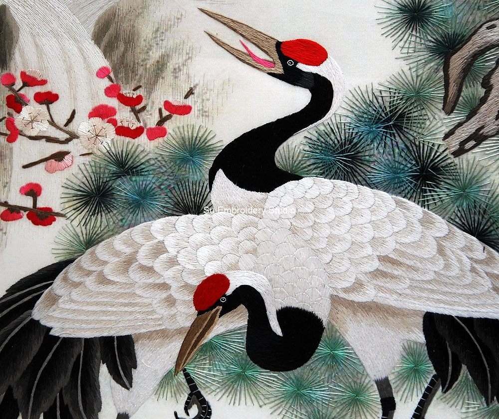 It is all hand embroidered with fine silk threads by embroidery artists from Su Embroidery Studio in Suzhou, China.