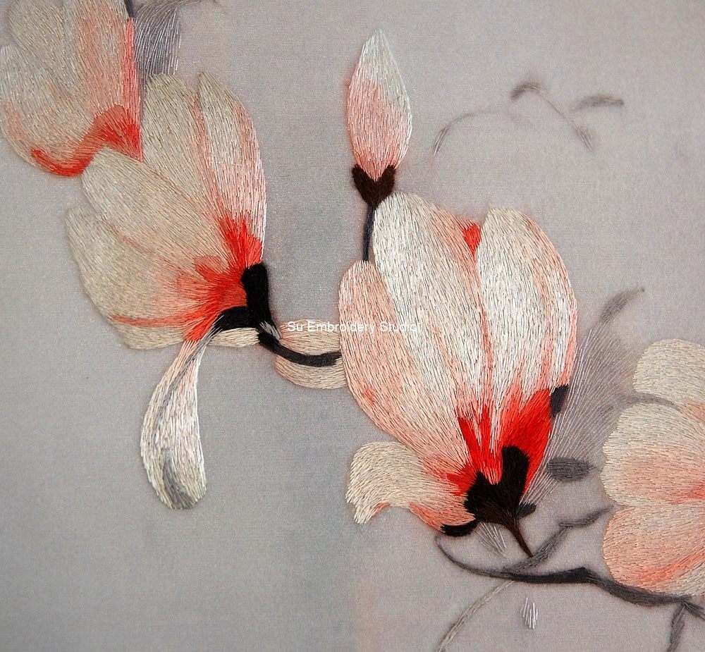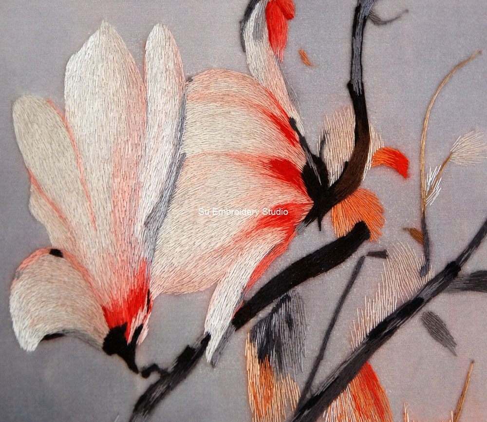 It is all hand embroidered with fine silk threads by embroidery artists from Su Embroidery Studio in Suzhou, China.