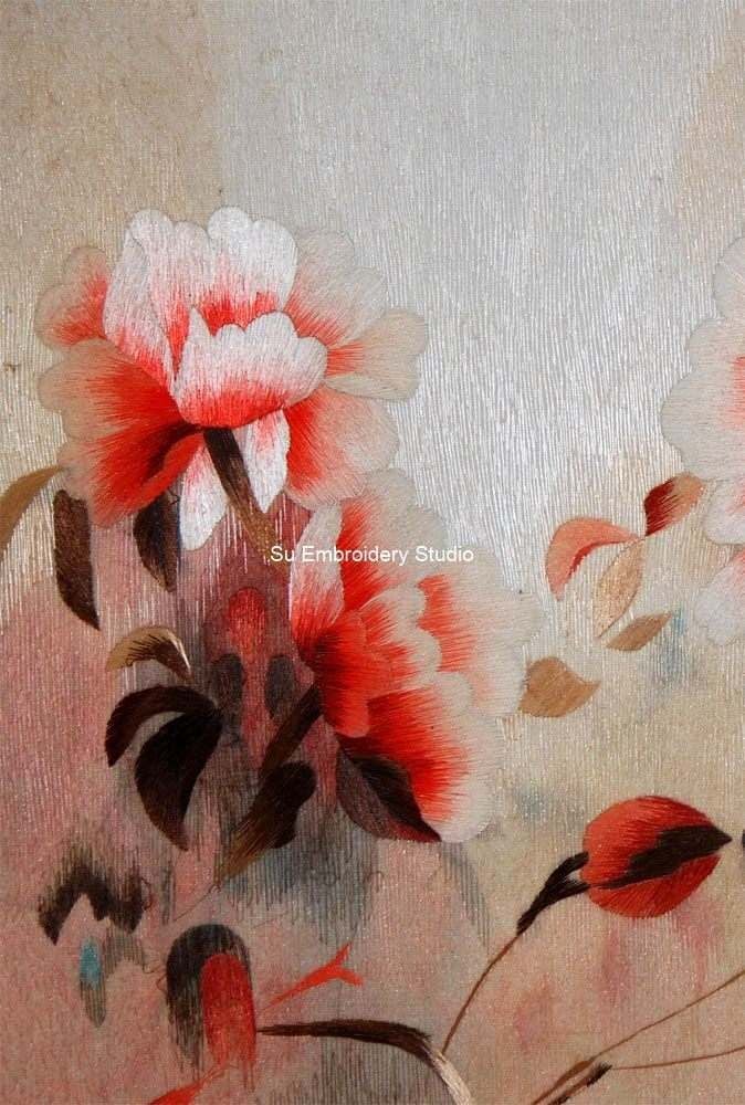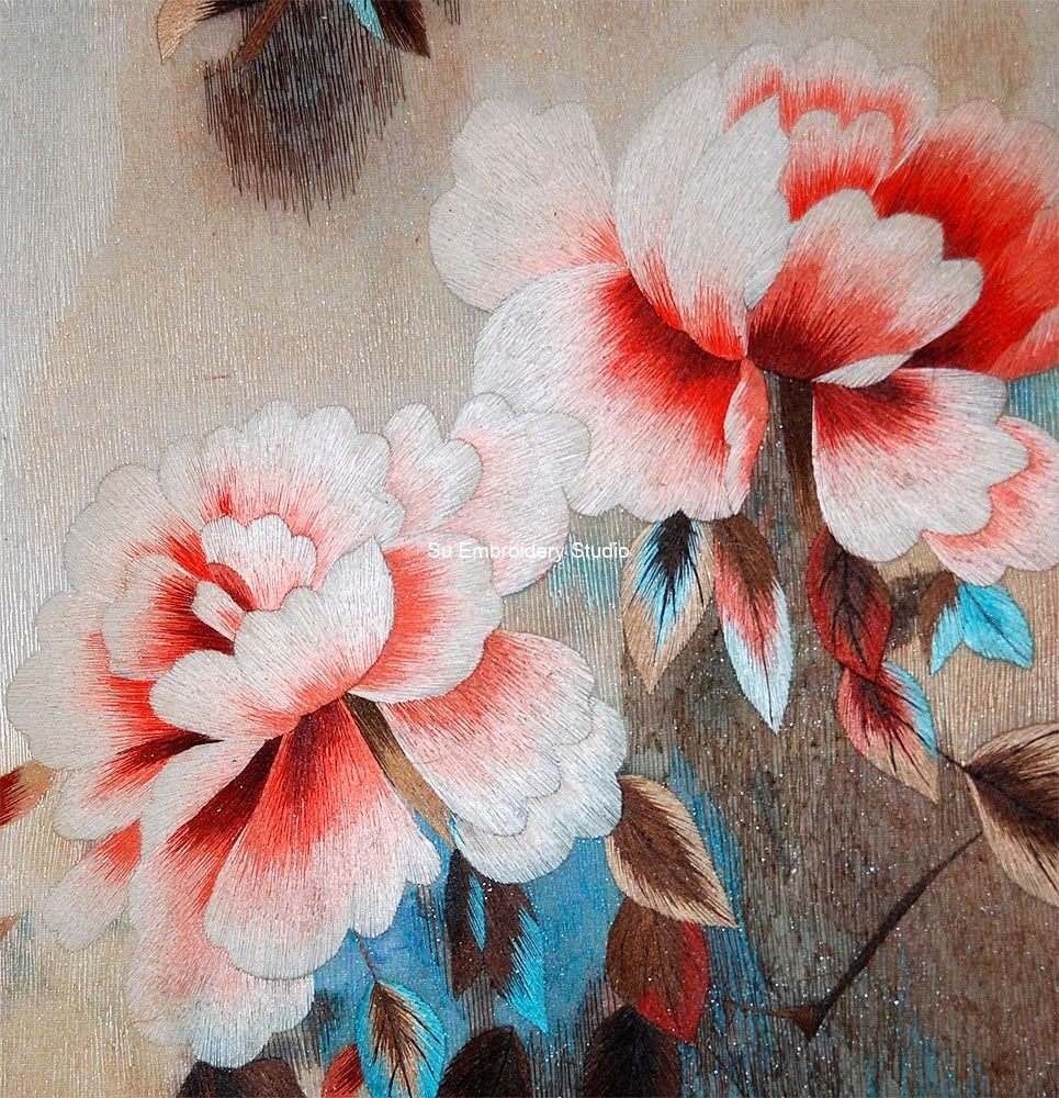 It is all hand embroidered with fine silk threads by embroidery artists from Su Embroidery Studio in Suzhou, China.