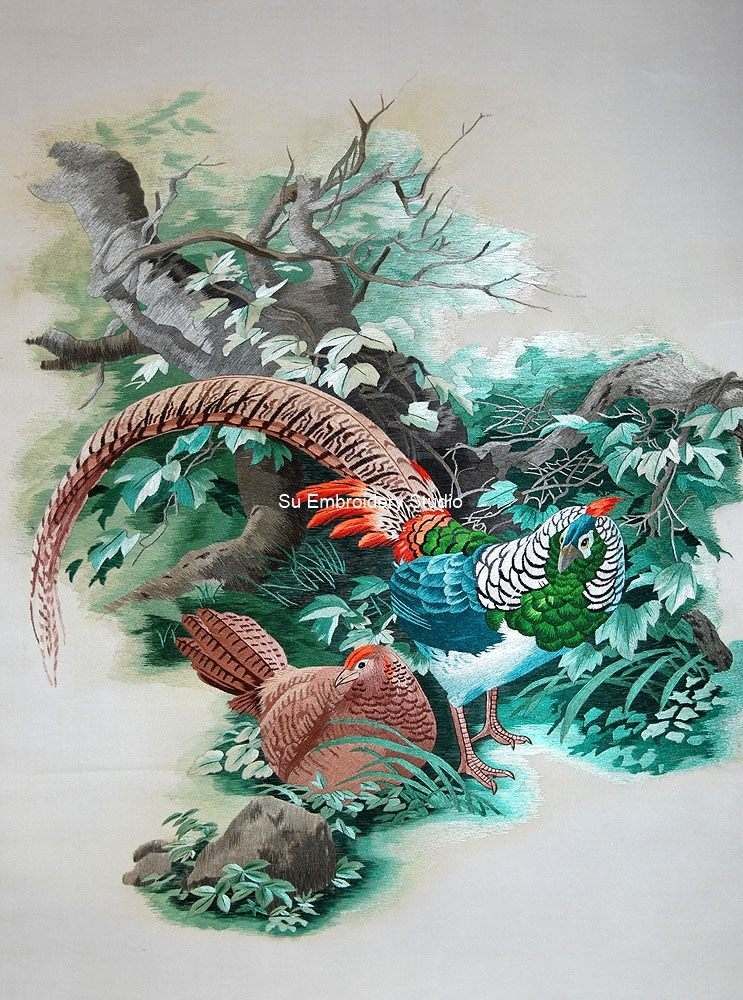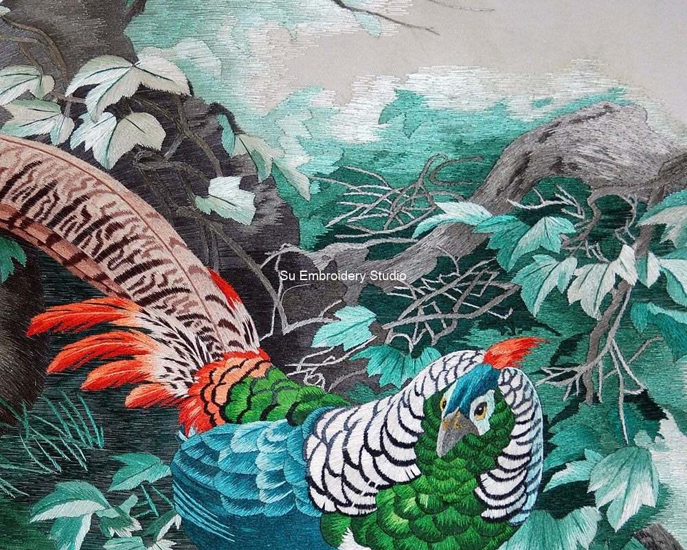 It is all hand embroidered with fine silk threads by embroidery artists from Su Embroidery Studio in Suzhou, China.