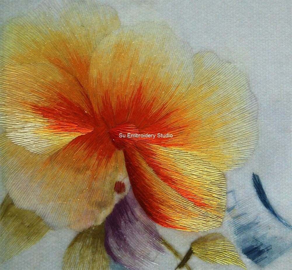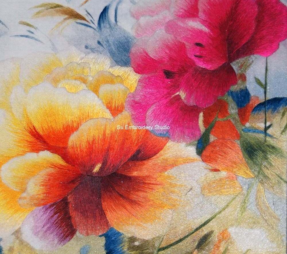 It is all hand embroidered with fine silk threads by embroidery artists from Su Embroidery Studio in Suzhou, China.