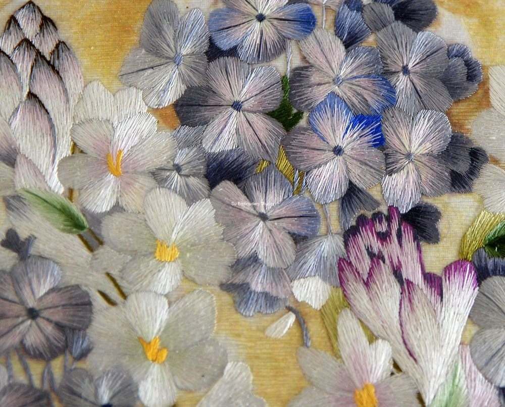 It is all hand embroidered with fine silk threads by embroidery artists from Su Embroidery Studio in Suzhou, China.