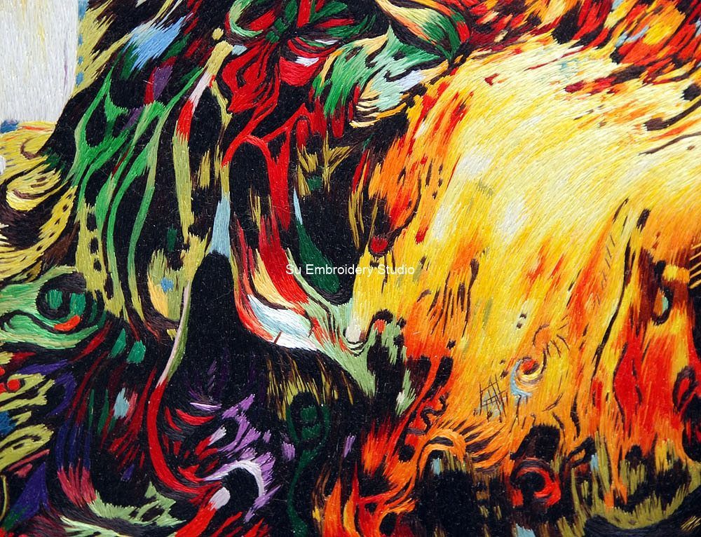 It is all hand embroidered with fine silk threads by embroidery artists from Su Embroidery Studio in Suzhou, China.