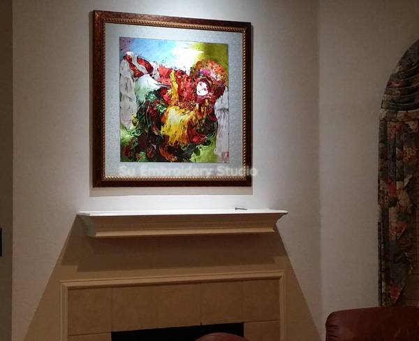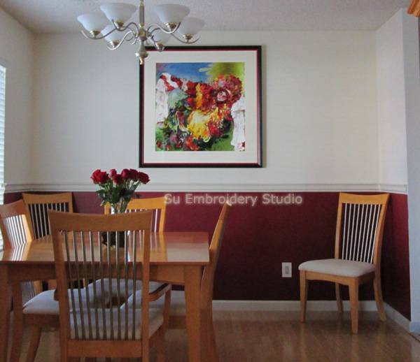 It is one of the bestselling silk embroideries. Here are two photos of the framed silk embroidery The Drunken Beauty our kind customers shared with us after framing.