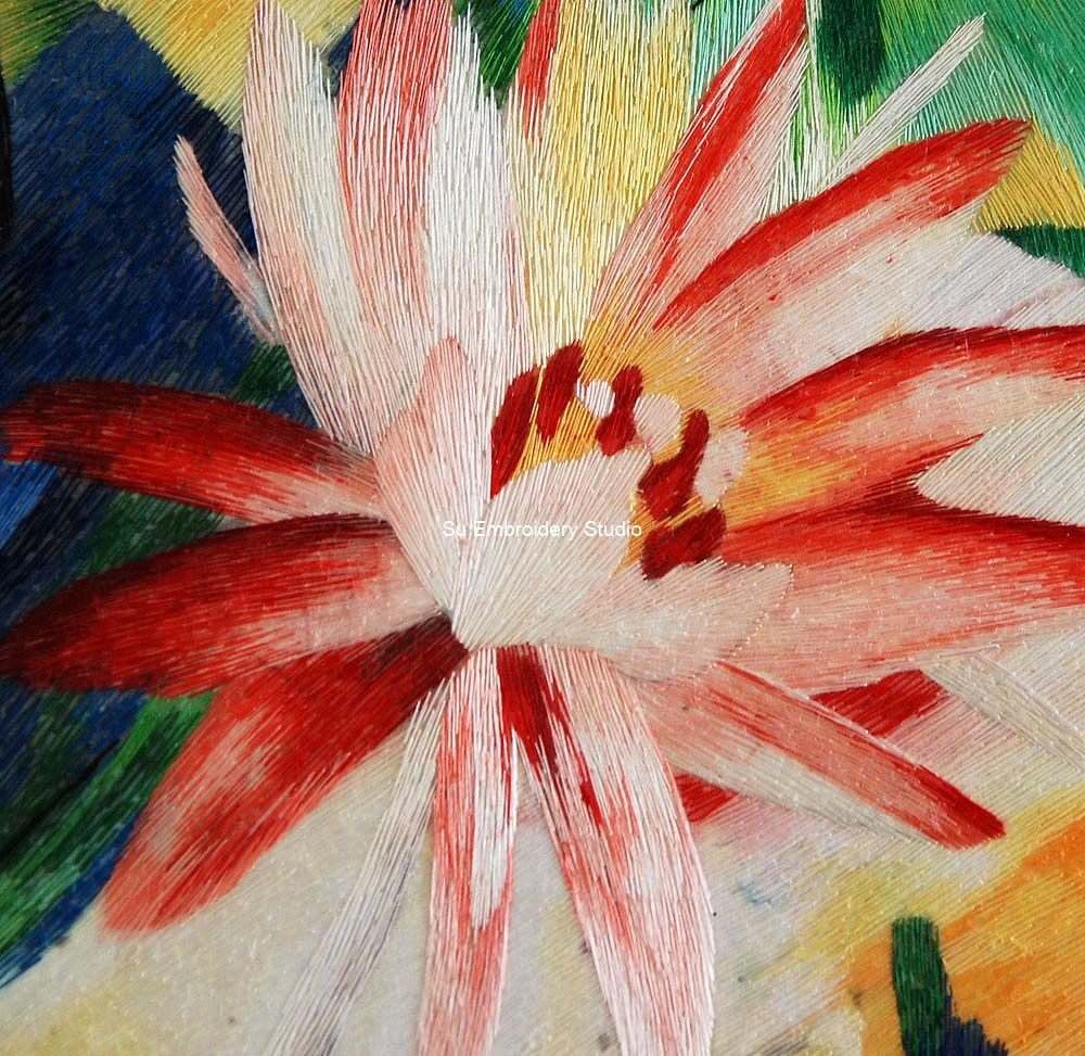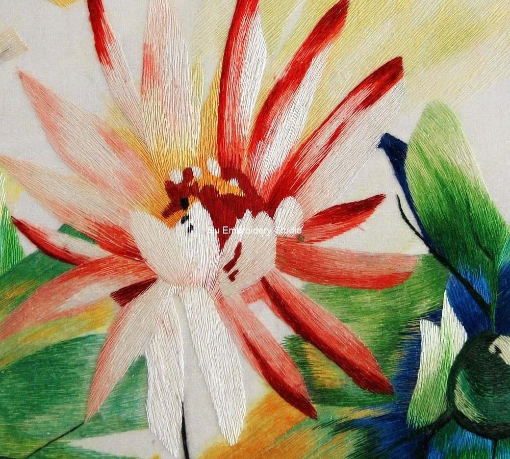 It is all hand embroidered with fine silk threads by embroidery artists from Su Embroidery Studio in Suzhou, China.