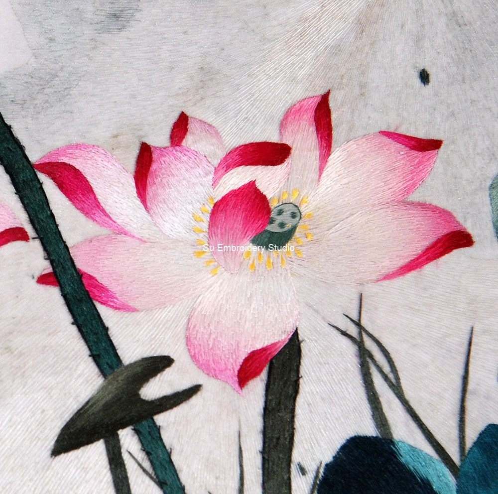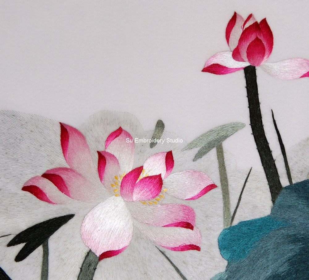It is all hand embroidered with fine silk threads by embroidery artists from Su Embroidery Studio in Suzhou, China.