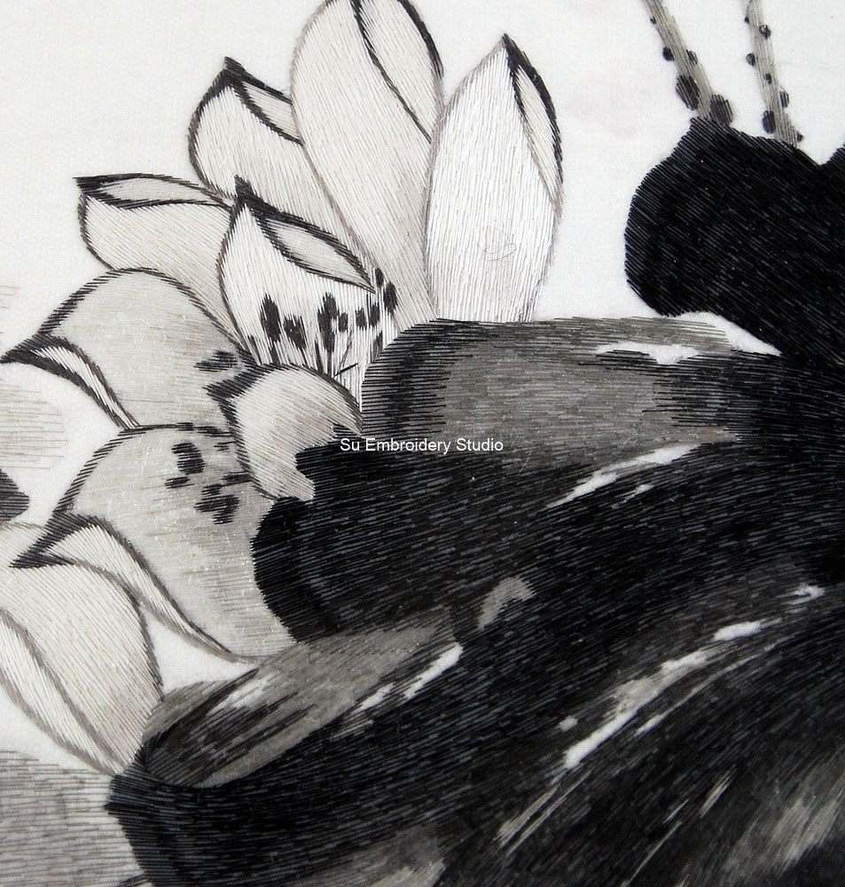 It is all hand embroidered with fine silk threads by embroidery artists from Su Embroidery Studio in Suzhou, China.