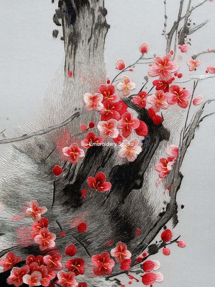 It is all hand embroidered with fine silk threads by embroidery artists from Su Embroidery Studio in Suzhou, China.