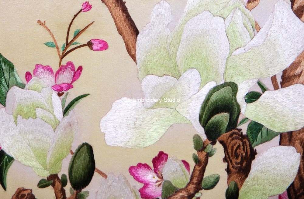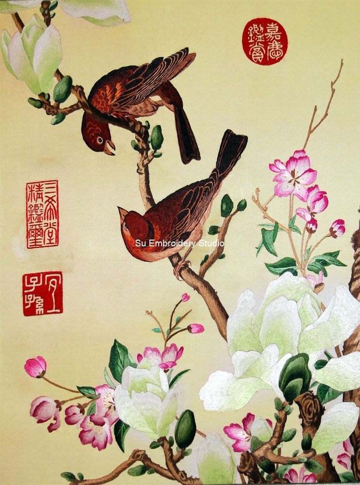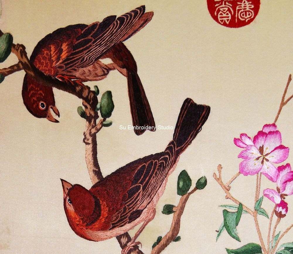 It is all hand embroidered with fine silk threads by embroidery artists from Su Embroidery Studio in Suzhou, China.