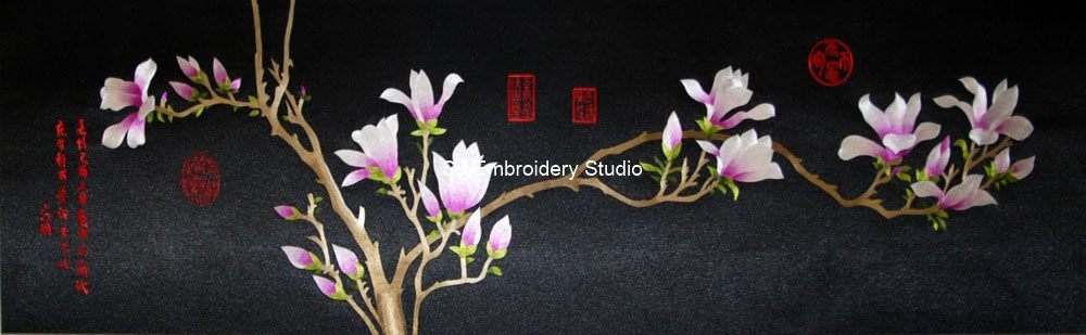 It is all hand embroidered with fine silk threads by embroidery artists from Su Embroidery Studio in Suzhou, China.