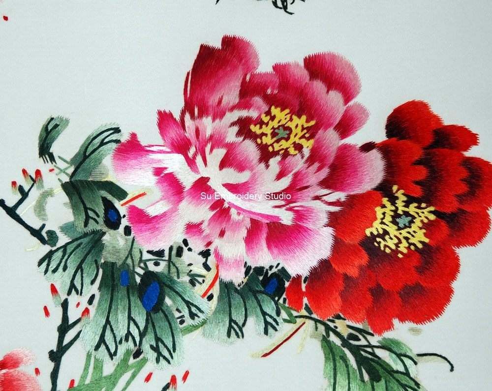 It is all hand embroidered with fine silk threads by embroidery artists from Su Embroidery Studio in Suzhou, China.