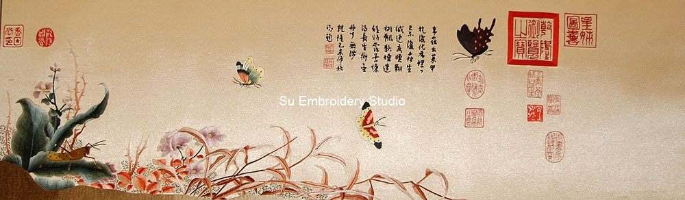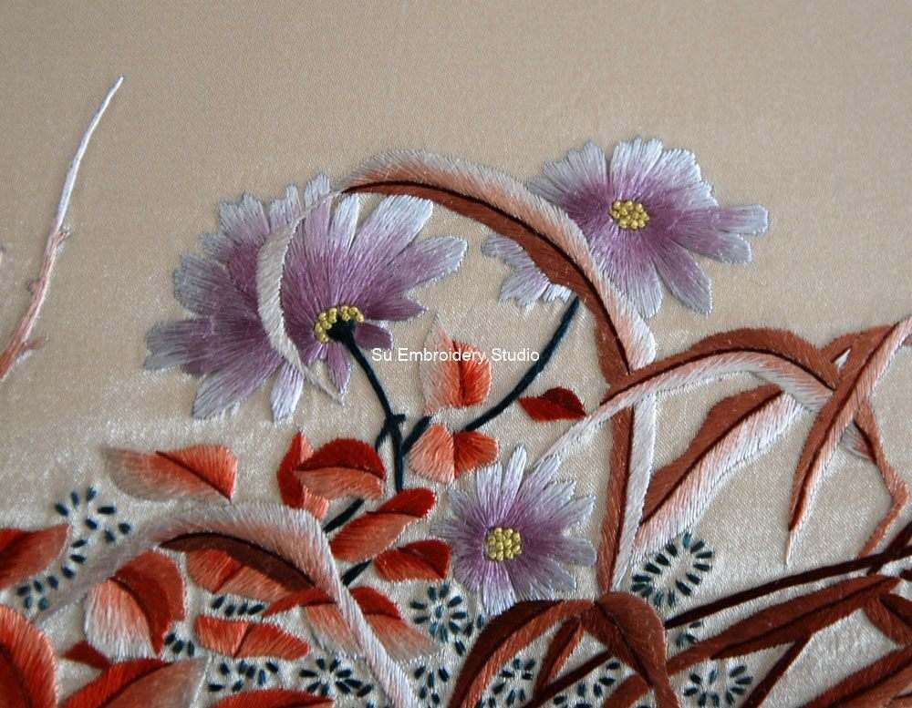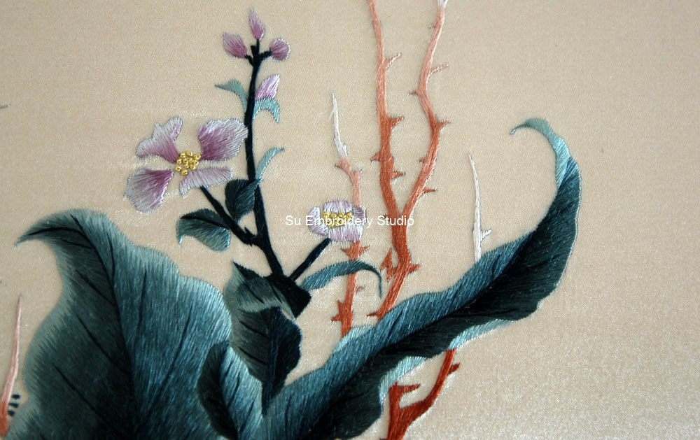 It is all hand embroidered with fine silk threads by embroidery artists from Su Embroidery Studio in Suzhou, China.