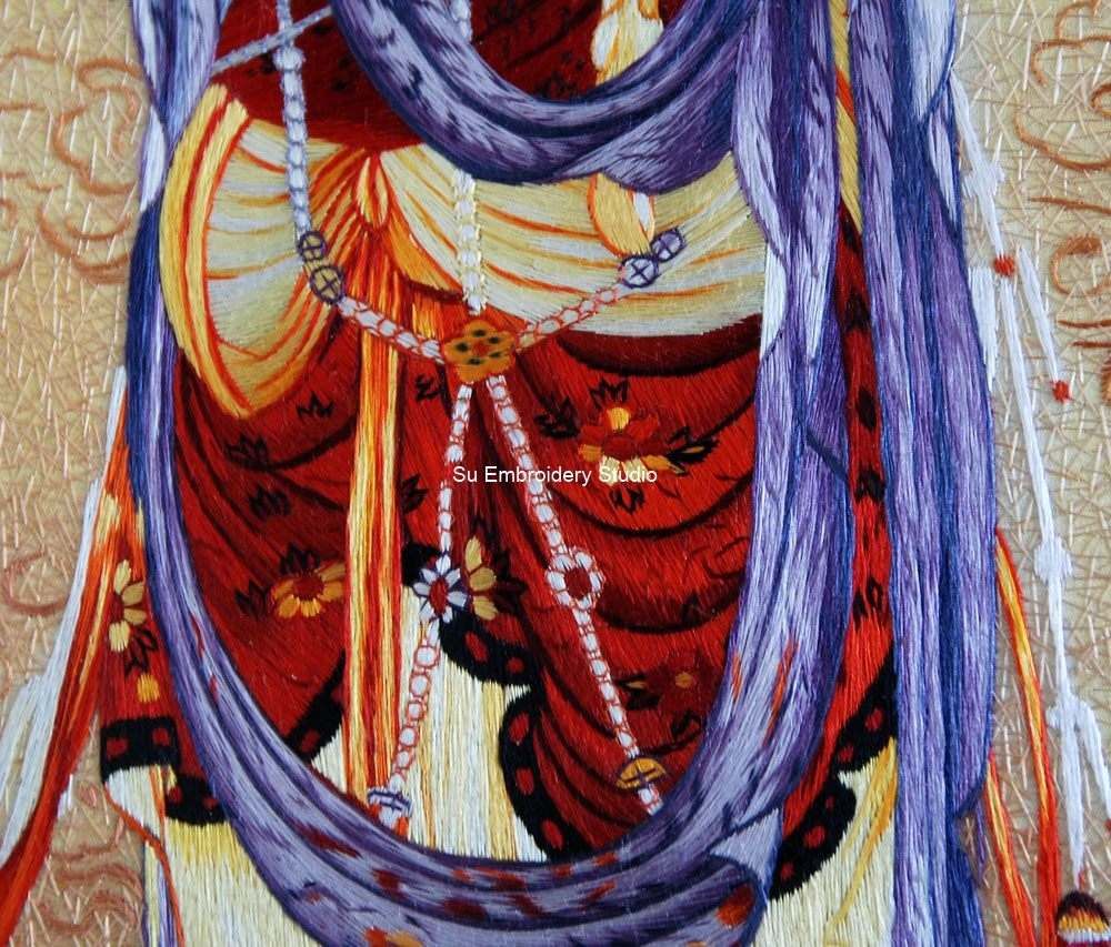 It is all hand embroidered with fine silk threads by embroidery artists from Su Embroidery Studio in Suzhou, China.
