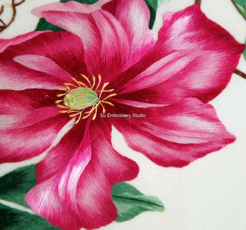 It is all hand embroidered with fine silk threads by embroidery artists from Su Embroidery Studio in Suzhou, China.