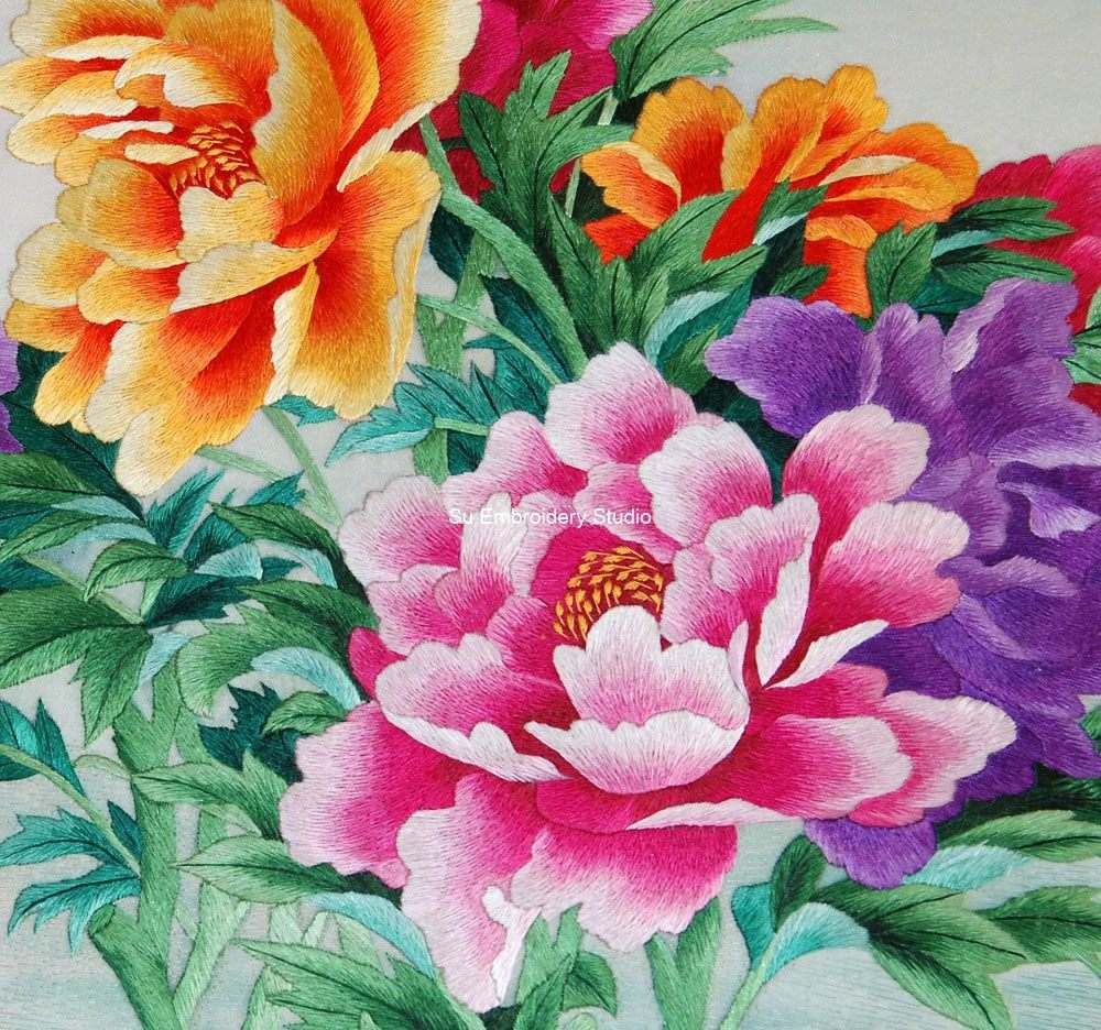 It is all hand embroidered with fine silk threads by embroidery artists from Su Embroidery Studio in Suzhou, China.