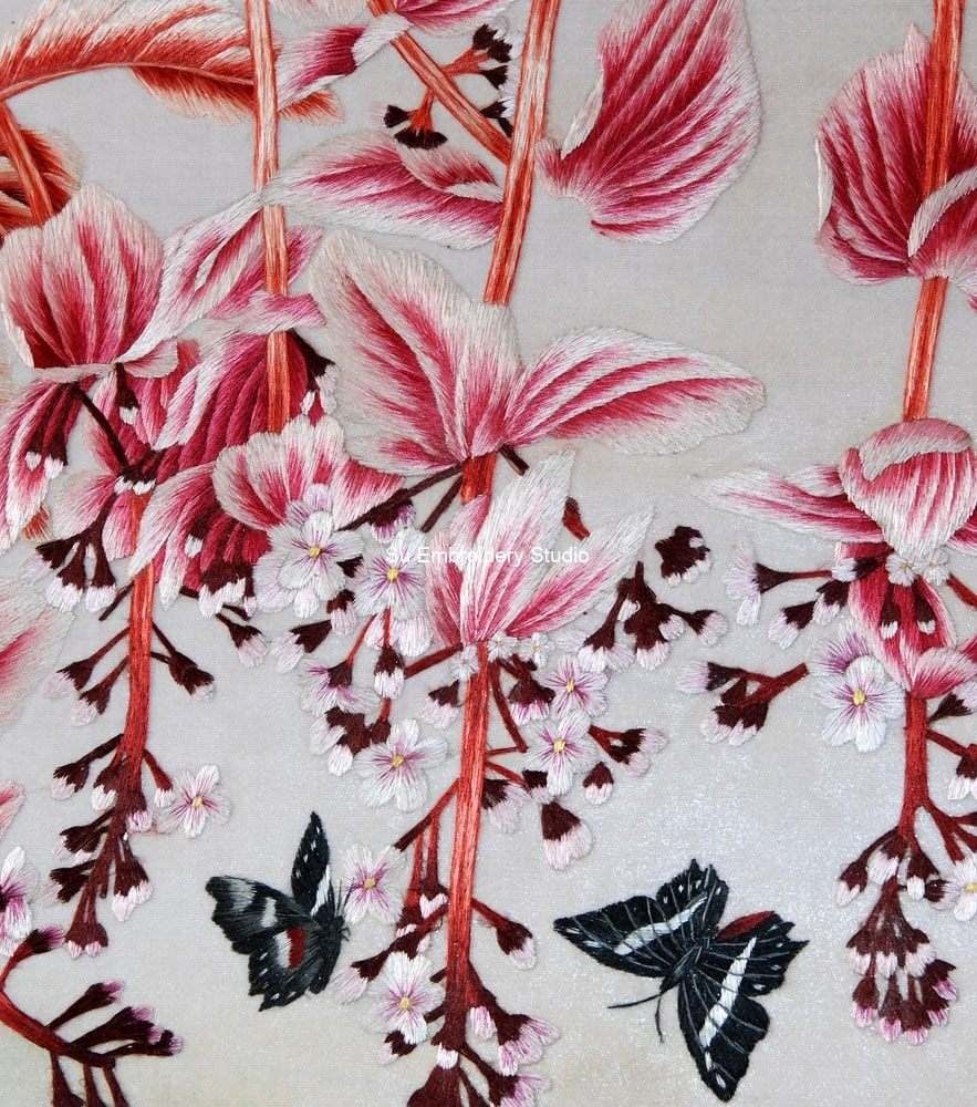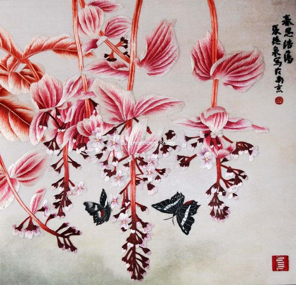 It is all hand embroidered with fine silk threads by embroidery artists from Su Embroidery Studio in Suzhou, China.