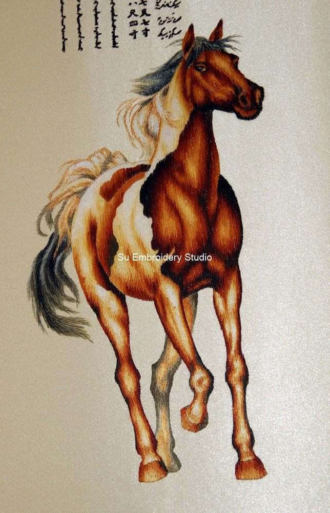This Chinese silk embroidery not only celebrates the beauty of nature through its depiction of horses but also pays homage to the cross-cultural artistic exchange that defined Lang Shining's legacy during the Qing Dynasty. As a collectible or decorative item, this artwork serves as a bridge between East and West, showcasing the enduring appeal of traditional Chinese artistry with a touch of Italian influence.