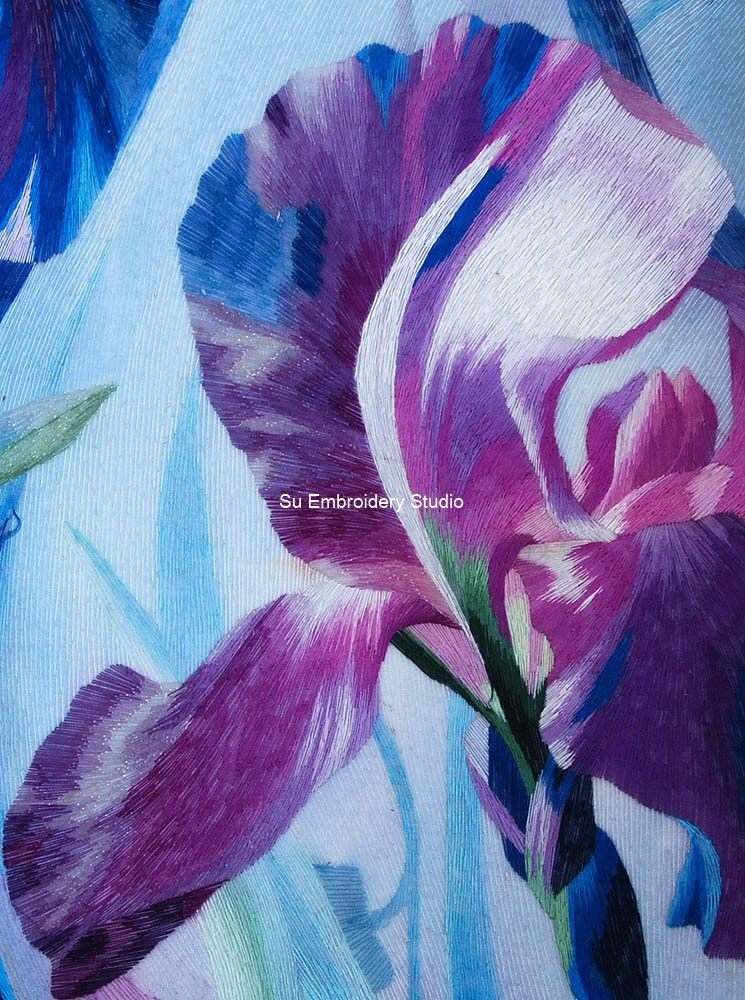 It is all hand embroidered with fine silk threads by embroidery artists from Su Embroidery Studio in Suzhou, China.