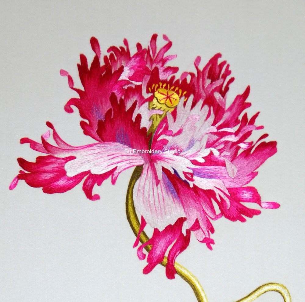 It is all hand embroidered with fine silk threads by embroidery artists from Su Embroidery Studio in Suzhou, China.