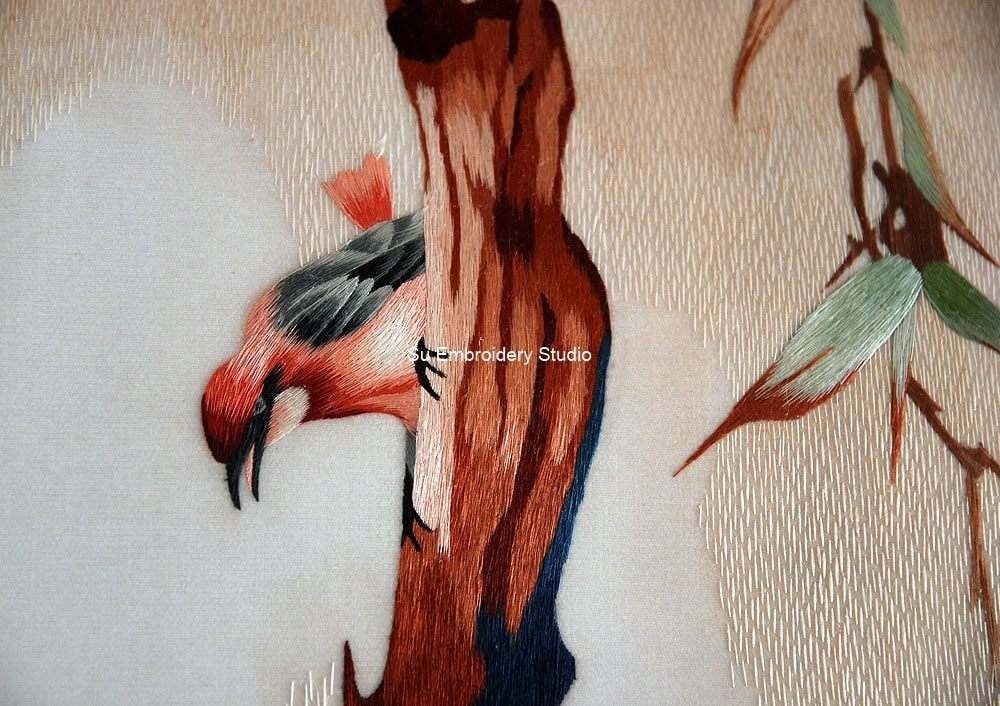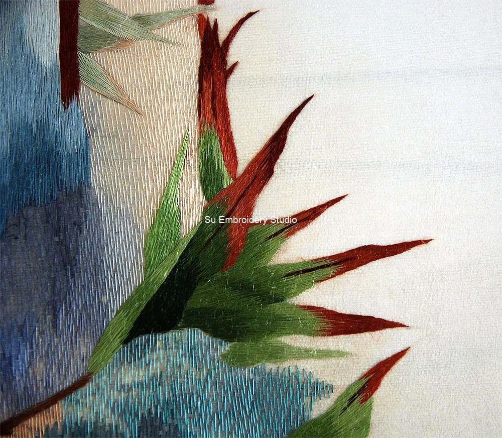 It is all hand embroidered with fine silk threads by embroidery artists from Su Embroidery Studio in Suzhou, China.