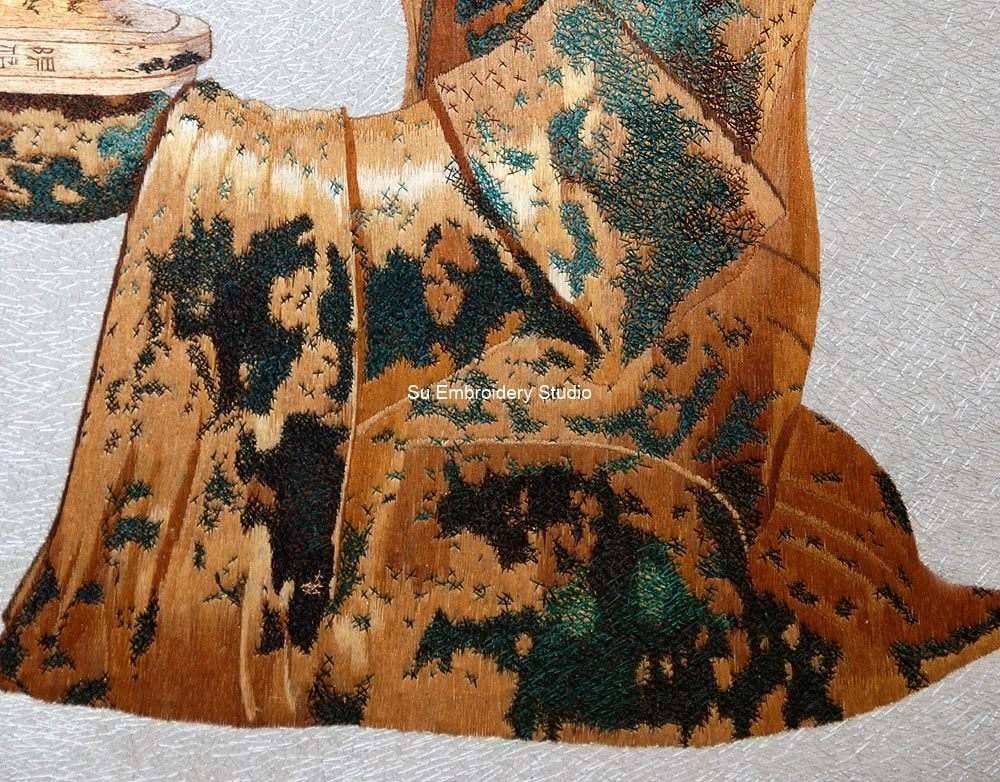 It is all hand embroidered with fine silk threads by embroidery artists from Su Embroidery Studio in Suzhou, China.