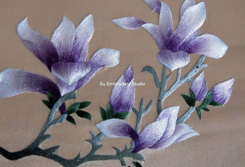 It is all hand embroidered with fine silk threads by embroidery artists from Su Embroidery Studio in Suzhou, China.