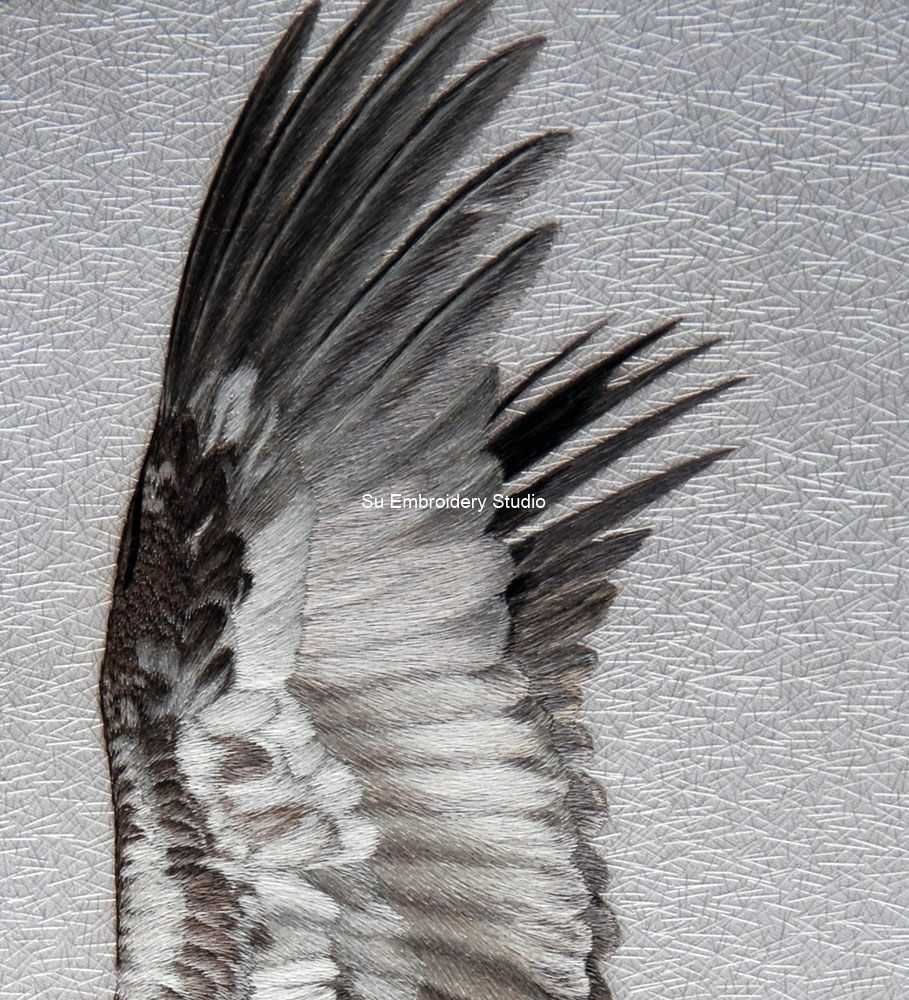 The background which is also hand embroidered, plain yet textured, serves to enhance the focus on the magnificent bird. As part of the curated collection for the Edinburgh exhibition, this silk embroidery is a testament to Su Embroidery Studio's dedication to merging artistic excellence with cultural richness. It not only commemorates the wildlife of Scotland but also stands as a symbol of the studio's global outreach, bringing the beauty of Chinese silk embroidery art to international audiences. This silk embroidery painting, a harmonious blend of tradition and innovation, offers a timeless connection to the natural splendor of Scotland's landscapes.