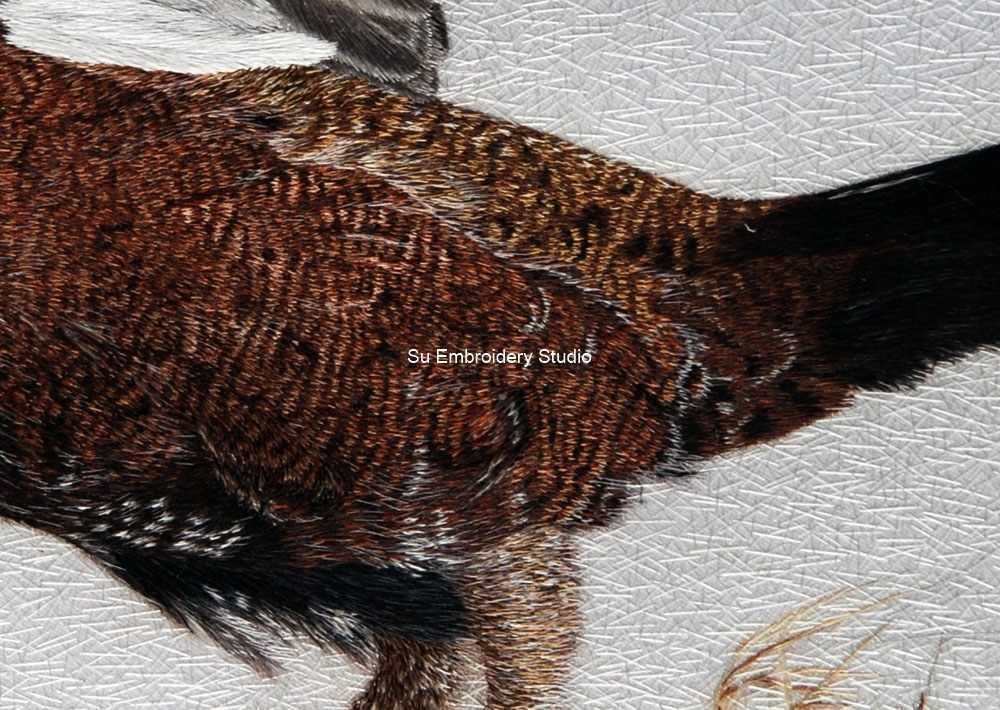 It is all hand embroidered with fine silk threads by embroidery artists from Su Embroidery Studio in Suzhou, China.