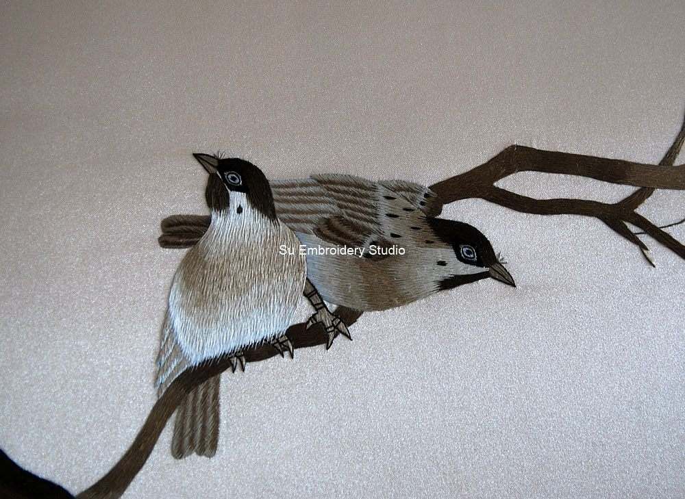 It is all hand embroidered with fine silk threads by embroidery artists from Su Embroidery Studio in Suzhou, China.