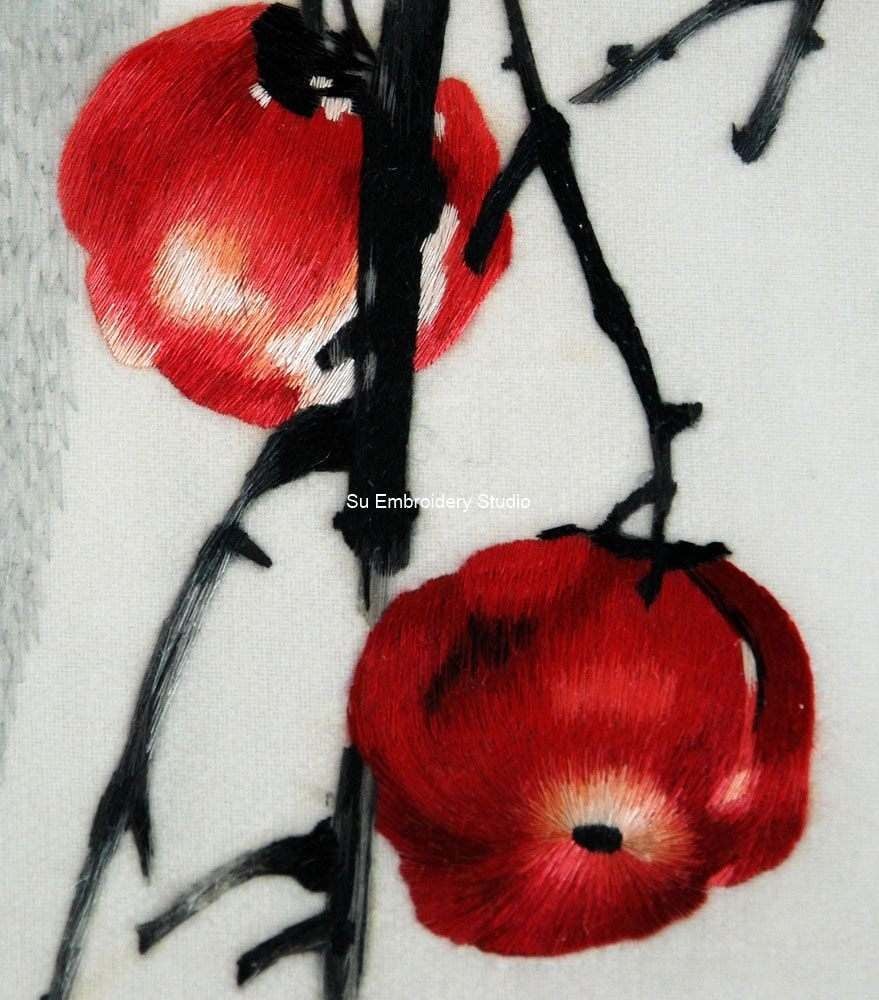 It is all hand embroidered with fine silk threads by embroidery artists from Su Embroidery Studio in Suzhou, China.