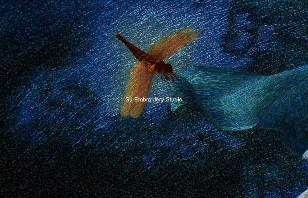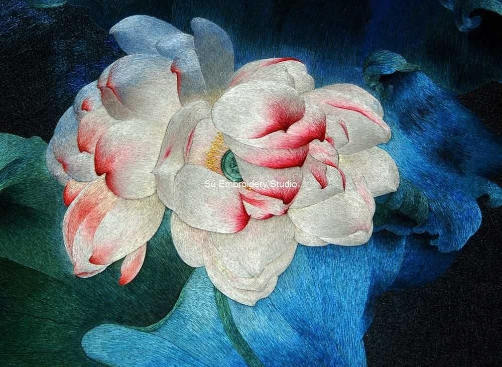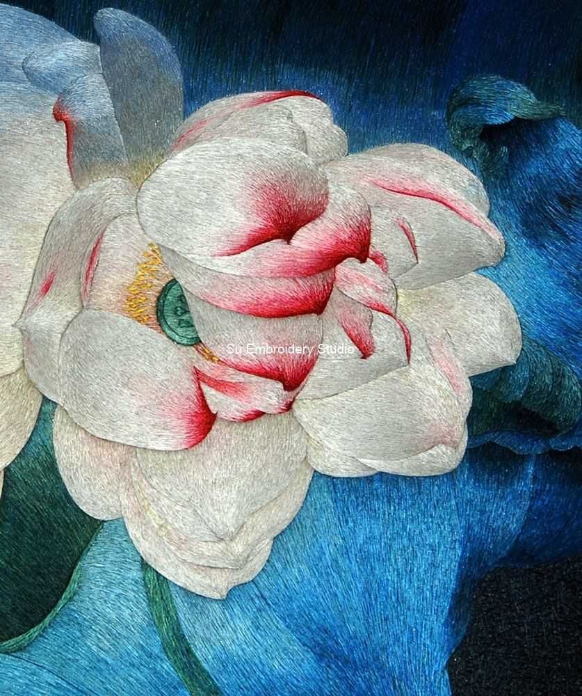 It is all hand embroidered with fine silk threads by embroidery artists from Su Embroidery Studio in Suzhou, China.
