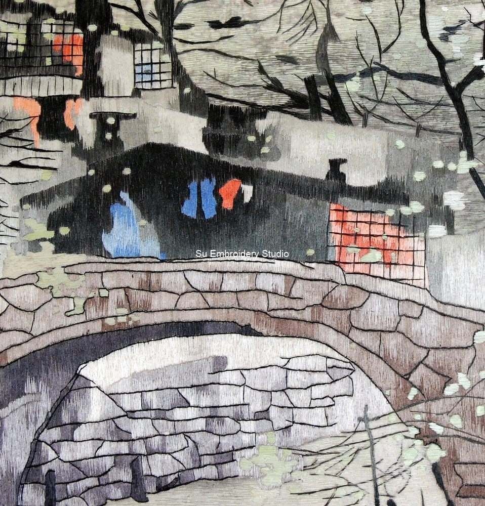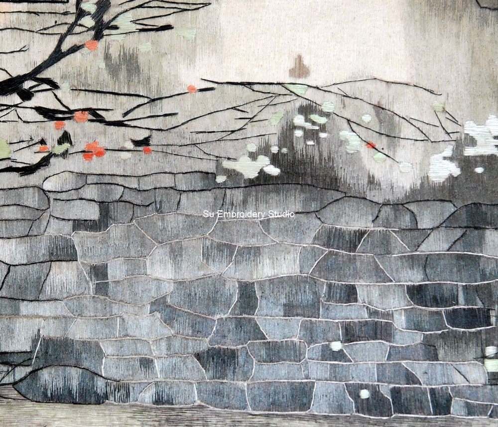 It is all hand embroidered with fine silk threads by embroidery artists from Su Embroidery Studio in Suzhou, China.
