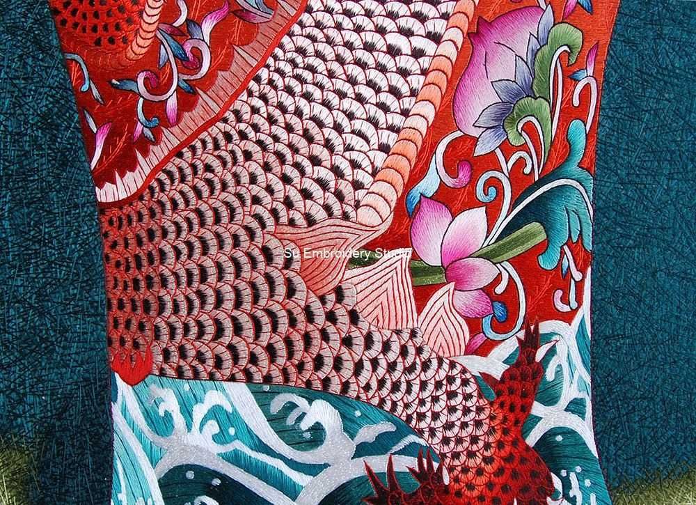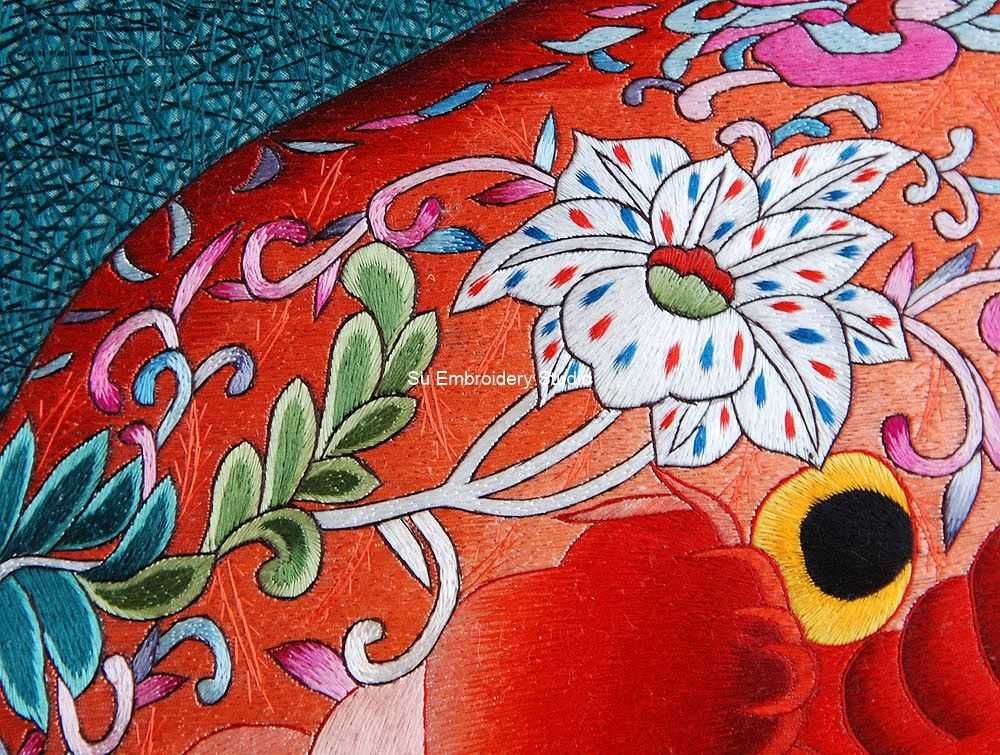 It is all hand embroidered with fine silk threads by embroidery artists from Su Embroidery Studio in Suzhou, China.