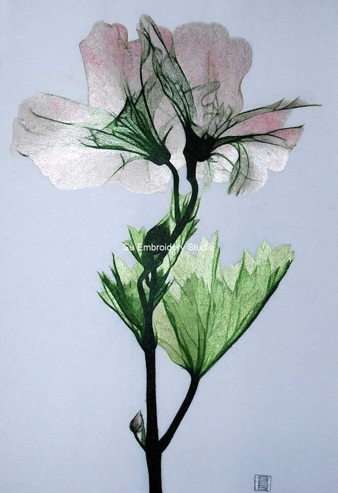 This Chinese silk embroidery is a captivating artwork that delicately captures the essence of a light pink flower in exquisite detail, inspired by the distinct artistry of photographer Albert Koetsier. The meticulous craftsmanship and intricate hand embroidery techniques employed in this piece bring the flower to life with a sense of realism and grace, mirroring Koetsier's unique photographic style.