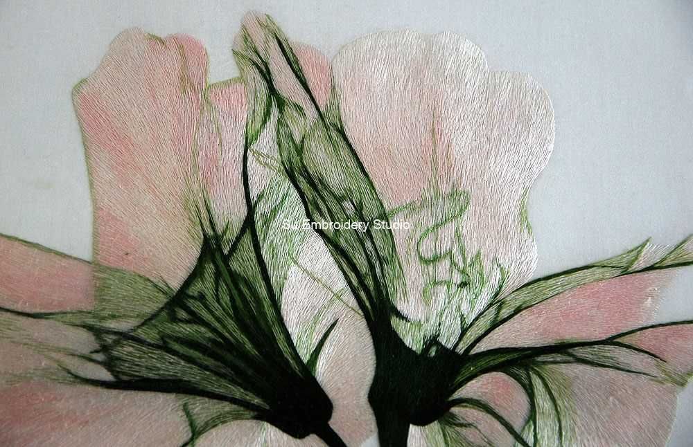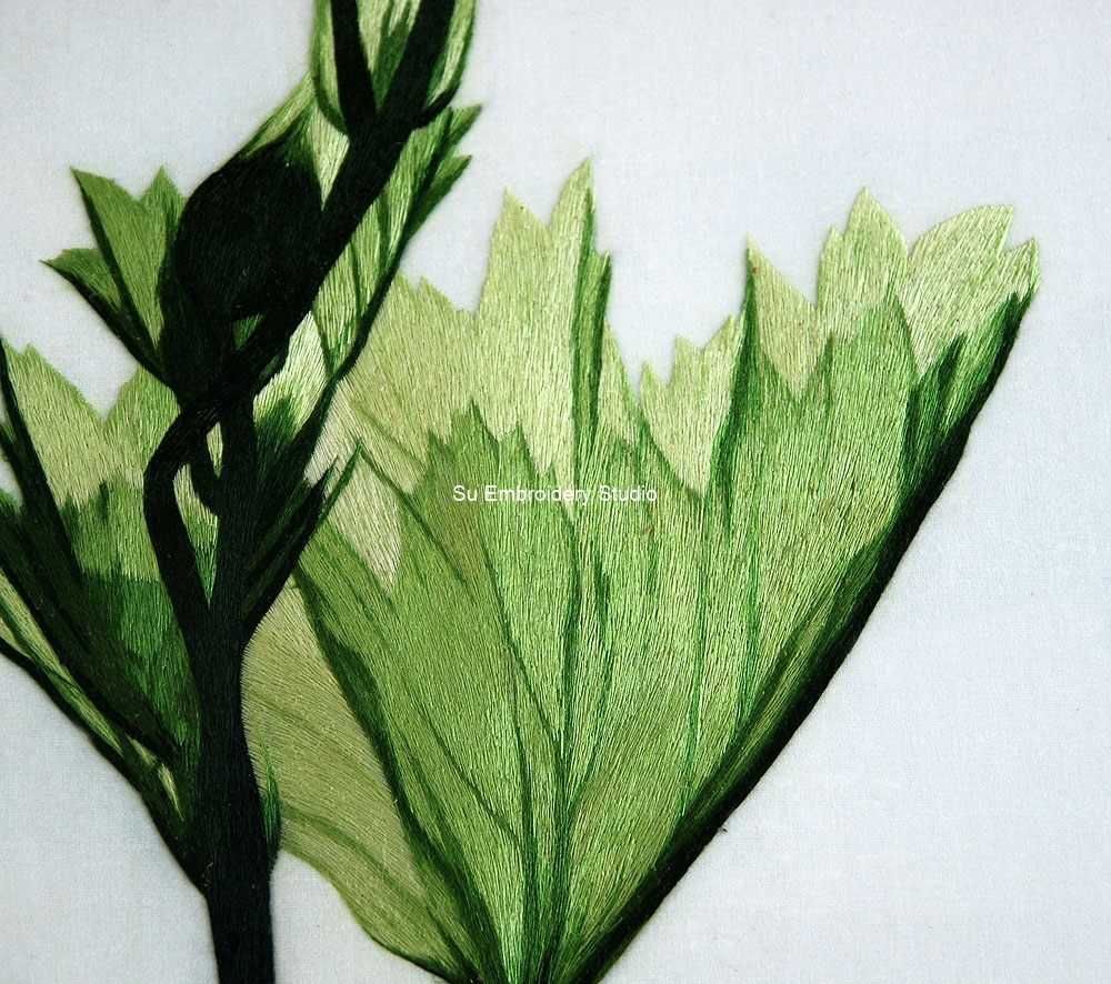 It is all hand embroidered with fine silk threads by embroidery artists from Su Embroidery Studio in Suzhou, China.