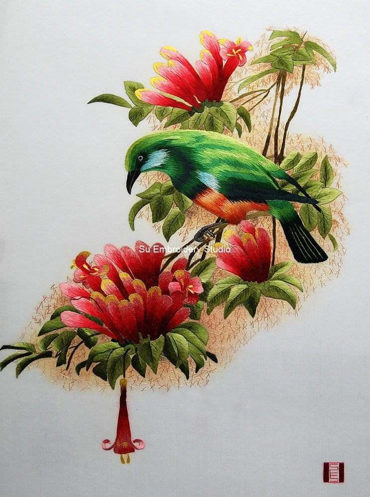 It is all hand embroidered with fine silk threads by embroidery artists from Su Embroidery Studio in Suzhou, China.