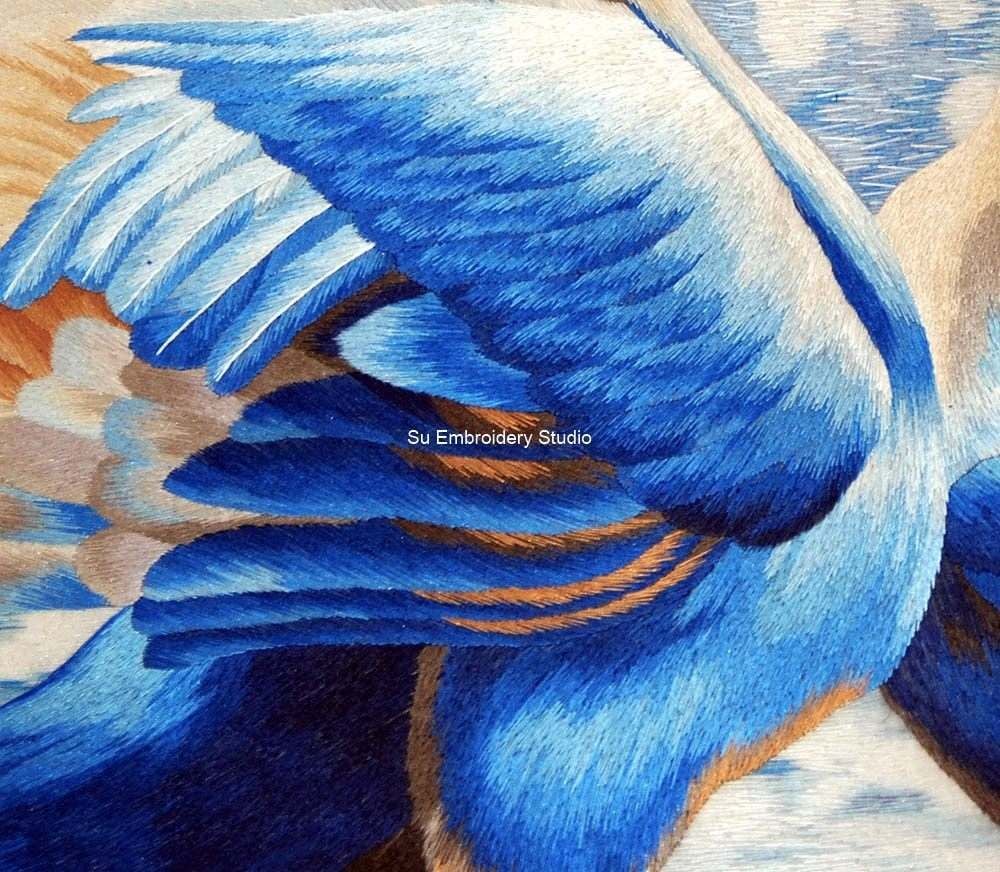It is all hand embroidered with fine silk threads by embroidery artists from Su Embroidery Studio in Suzhou, China.