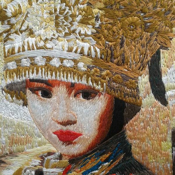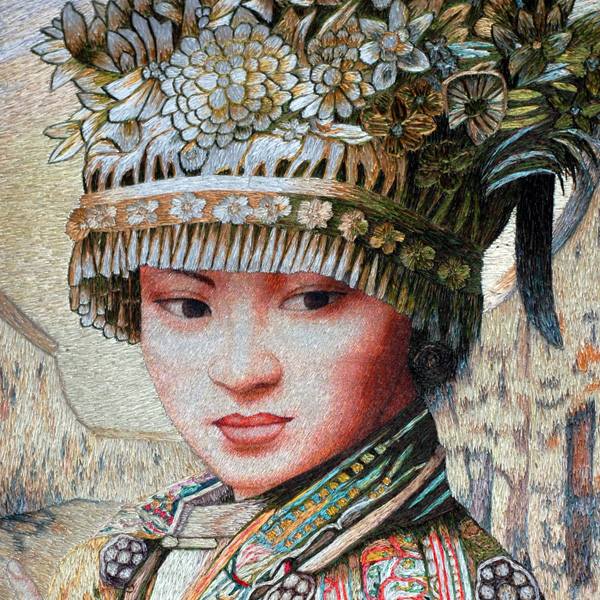 As you can see from the close-up photos above, it is really a challenging task to differentiate the hand embroidery from the machine-made embroidery, especially the landscape and floral silk embroidery paintings which require relatively easy embroidery skills. So a very effective way to tell if the producer or seller specializes hand embroidery is to see if their collection has a large number of portrait embroidery paintings. The skin parts, face and hands for instance, in a portrait silk embroidery requires much finer silk threads to embroider than in the other parts so they can look smooth and natural. Embroidery machines at this stage are not able to handle the threads so fine. The final suggestion is that if you see the embroidery producer or seller can custom make portrait embroidery from personal photographs, you can be 100% confident that they do hand embroidery. Portrait embroidery from personal phototraphs is the hardest hand embroidery work. The hyper realism in the custom portrait embroidery requires the highest embroidery skills which many Chinese embroidery artists even with more than 30 years of embroidering experience are still not qualified to do.
