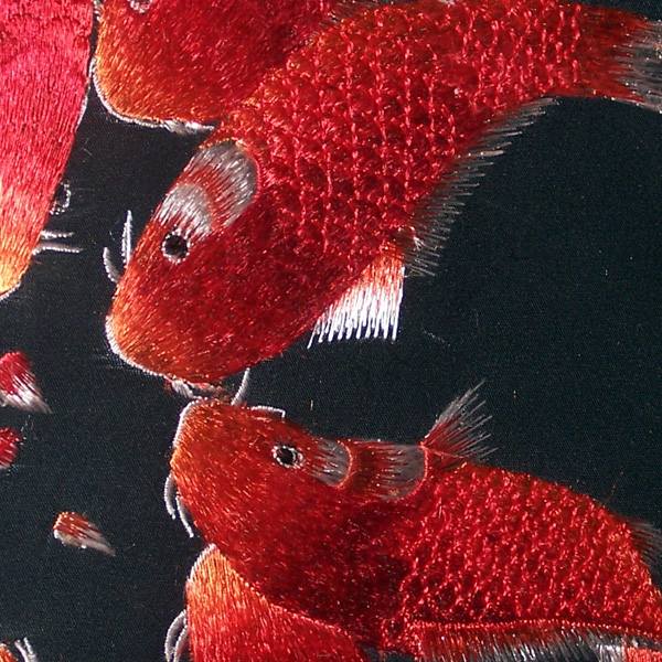 Hand embroidery often appears more brilliant and vibrant in color compared to the somewhat duller appearance of machine embroidery. When closely examining enlarged photos, hand embroidery appears neater, with a smoother texture, while machine embroidery can appear rougher.