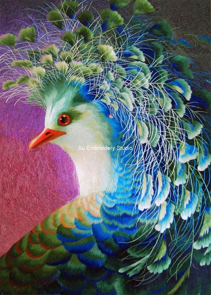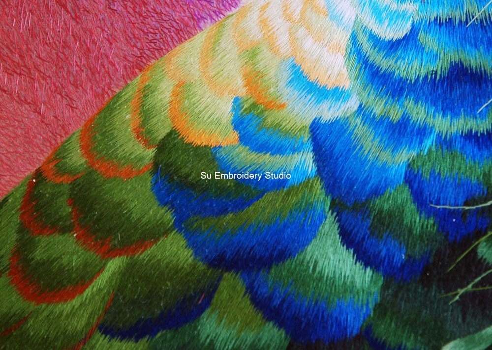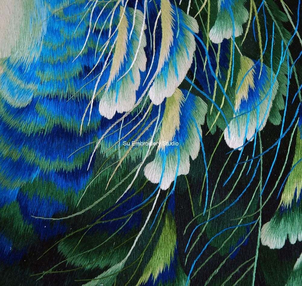 It is all hand embroidered with fine silk threads by embroidery artists from Su Embroidery Studio in Suzhou, China.