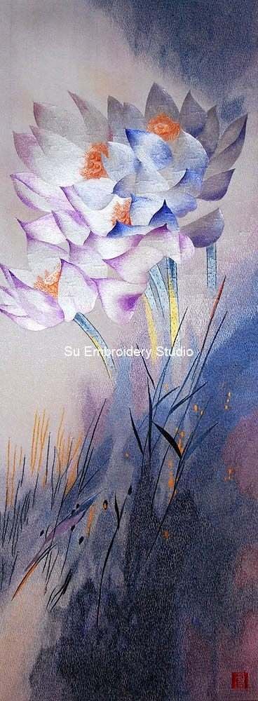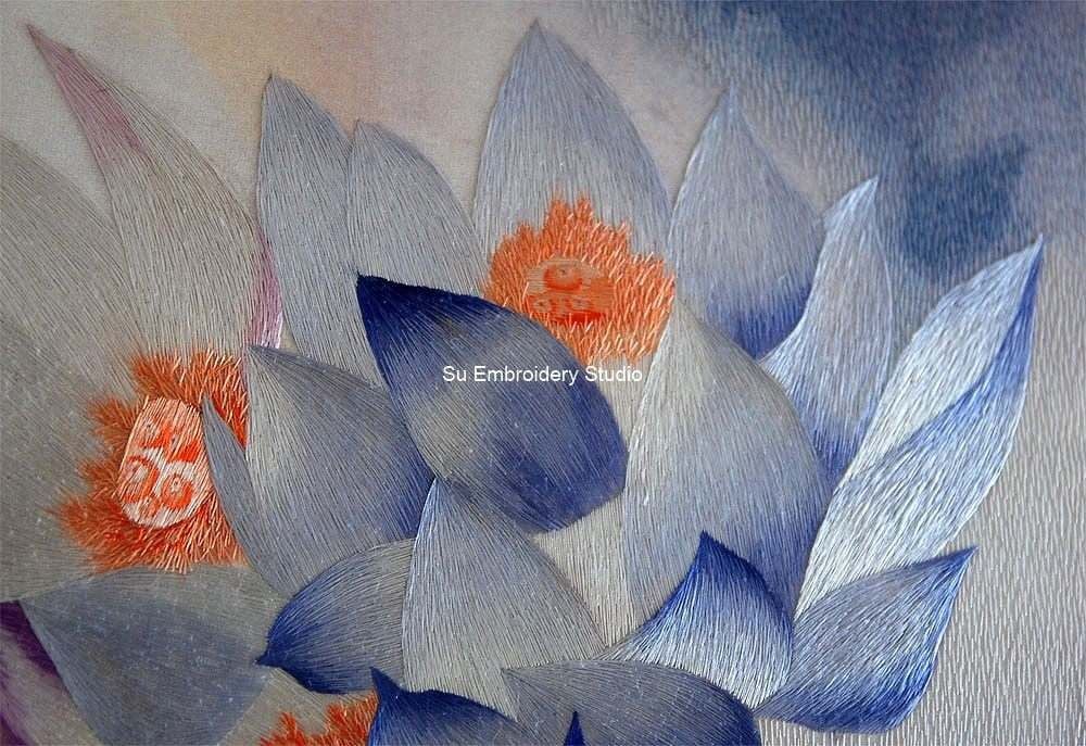 As a stunning example of hand embroidered artwork, this silk embroidery seamlessly marries traditional craftsmanship with contemporary allure. Whether you appreciate the symbolism of lotus flowers, the artistry of silk embroidery, or the meticulous skill involved in needle painting, this piece invites you to explore the world of exceptional, hand-embroidered craftsmanship.