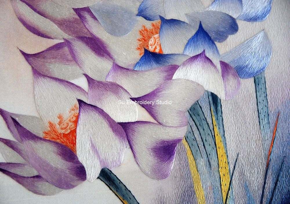 It is all hand embroidered with fine silk threads by embroidery artists from Su Embroidery Studio in Suzhou, China.