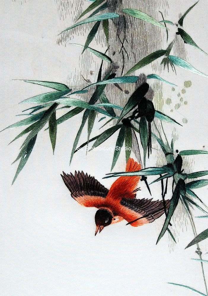 It is all hand embroidered with fine silk threads by embroidery artists from Su Embroidery Studio in Suzhou, China.